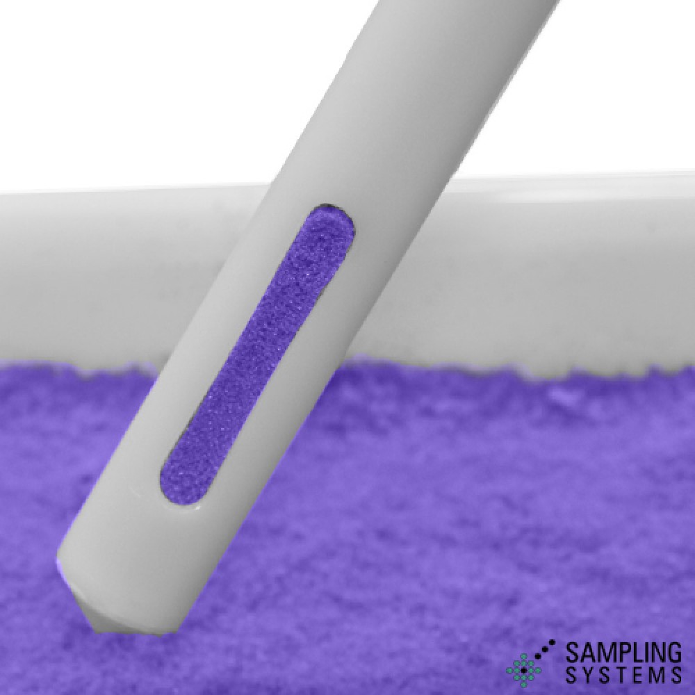 It is designed to take a 50ml powder sample from near the tip. The sampler is made in a cleanroom to ensure cleanliness and can be used straight from the bag.